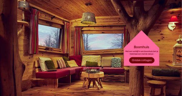 Boomhuis: verblijf tussen de boomtoppen en geniet van het beste uitzicht over de goudgele herfstbladeren in het bos. Van buiten lijkt het een echte boomhut, van binnen is het een comfortabele cottage met alles wat je nodig hebt. Hier beleven jullie de herfst op haar mooist!